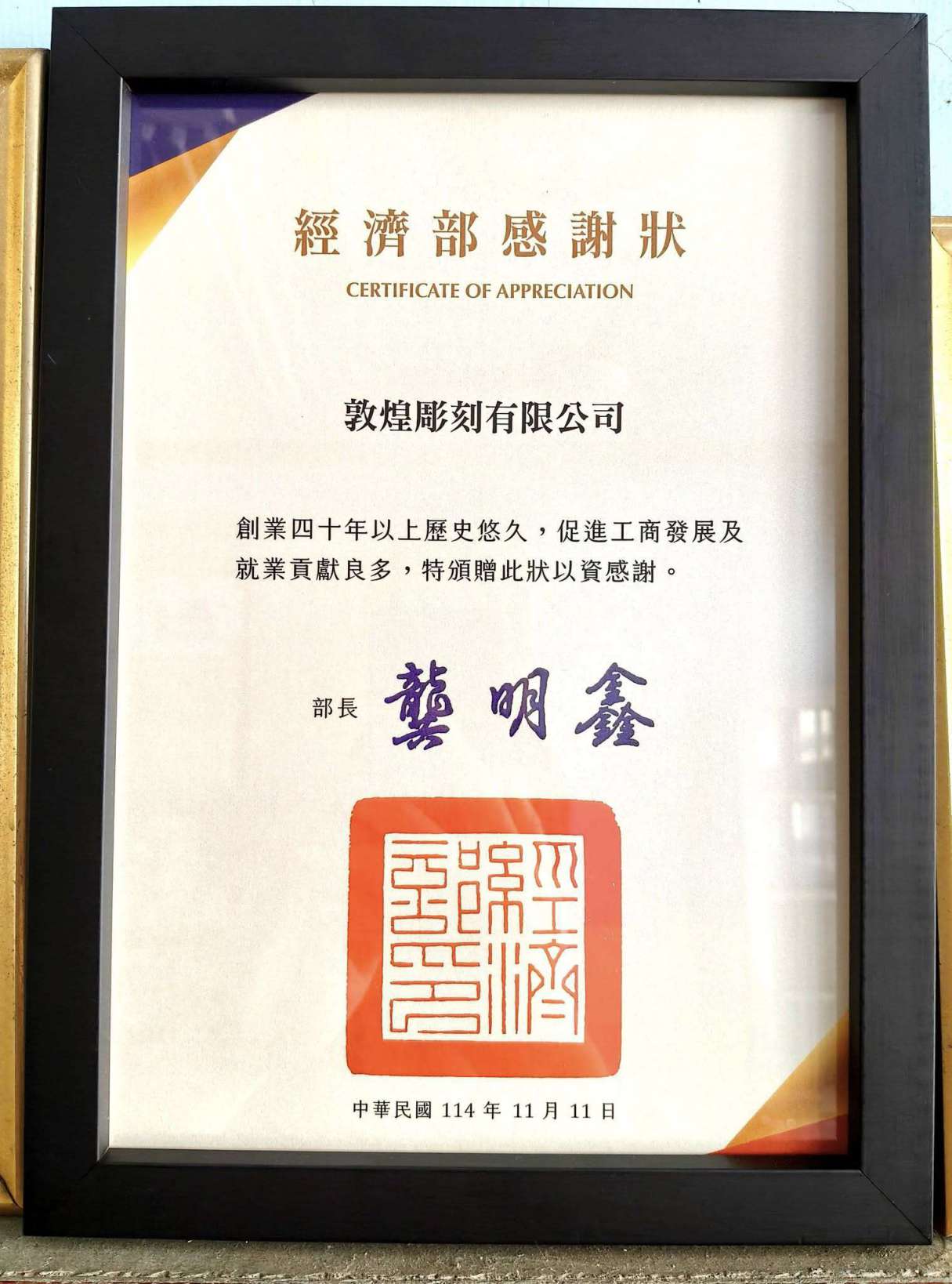 経済部から賞状をいただき、とても嬉しく思います。40年以上、木彫り仏像の専門工房として歩んできた努力が認められ、本当に感謝しています。これからも伝統技術を守りつつ、より良い仏像づくりに励んでまいります